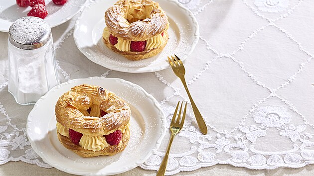 Věnečky Paris-Brest: Recept na legendární francouzský dezert s vanilkovým krémem a malinami