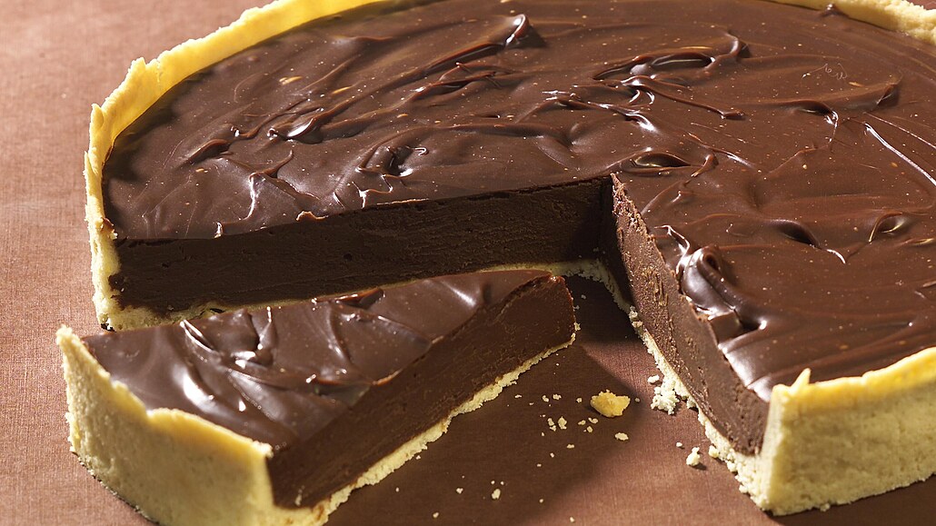 - Vychladlý pájový korpus naplníme čokoládovou hmotou, necháme ji ztuhnout a teprve pak koláč nakrájíme.