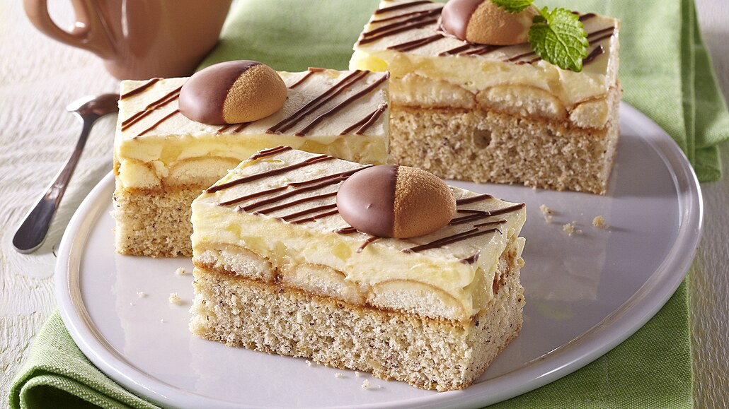 Bohatý moučník s oříškovým korpusem a vrstvou rumových piškotů, které se ukrývají pod jemným pudinkovým krémem. Čokoládové zdobení a kousky ananasu dělají z tohoto dezertu reprezentativní sladkost vhodnou pro narozeninové oslavy i sváteční příležitosti.