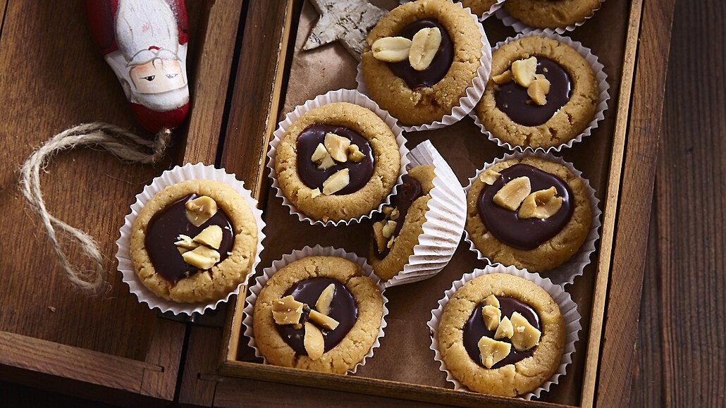 - Po ztuhnutí naplníme košíčky nejdříve malým množstvím arašídového másla. Čokoládu rozpustíme na horké vodní lázni a vmícháme horkou smetanu.