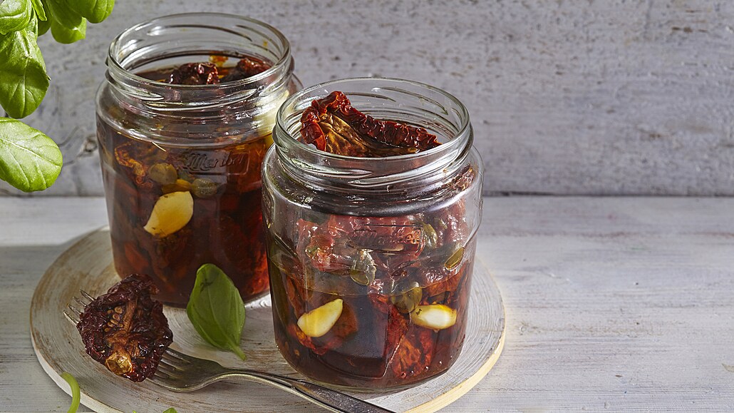 - Česnek oloupeme a velké stroužky překrojíme podélně na polovinu. Do skleniček skládáme rajčata. Prokládáme česnekem, kapary a nakonec zalijeme olejem. Skleničky uzavřeme a skladujeme v chladu.