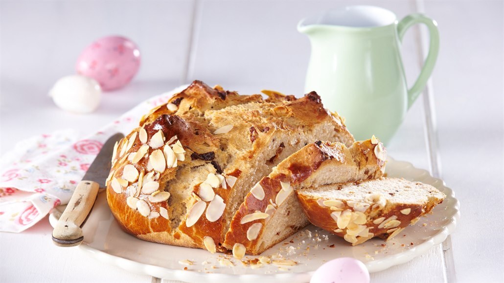 - Mouku a další sypké ingredience smícháme se sušeným droždím, přidáme žloutky, vlažné mléko, rozehřáté máslo, rozinky namočené v rumu a v robotu zaděláme v jednom kroku těsto.