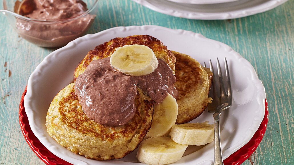 - Do jogurtu zamícháme mletý kokos s medem a vše promícháme. Nakonec do krému prosijeme kakao. Lívance podáváme přelité krémem a ozdobené kolečky banánu.