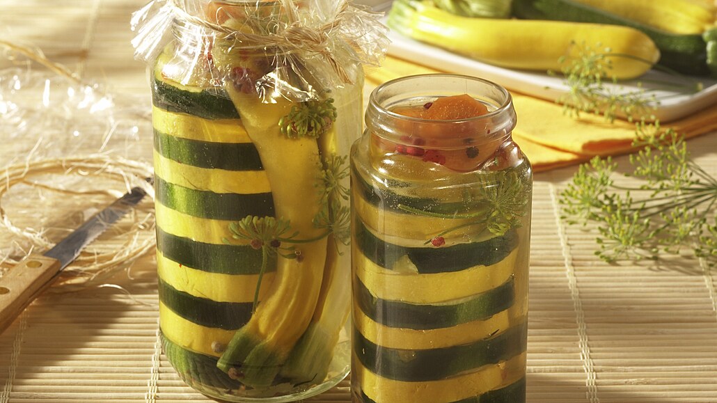 - Horkým nálevem zalijeme zeleninu ve sklenicích a sklenice uzavřeme. Při 85 °C sterilujeme 20 minut.