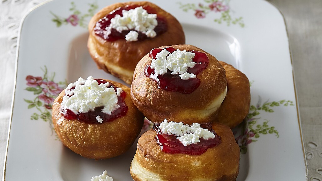 - Do koleček uděláme dnem skleničky důlky a postupně je smažíme z obou stran ve velkém množství rozehřátého oleje. Necháme okapat a podáváme s džemem a nastrouhaným tvarohem.