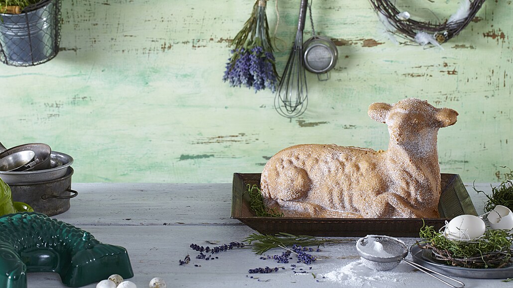 - Pečeme ve vyhřáté troubě na 160 °C asi 30 minut, pak teplotu zvýšíme na 180 °C a dopékáme dalších 20 minut. Po upečení necháme krátce vychladnout beránka ve formě a pak vyklopíme na kovovou mřížku. Před podáváním pocukrujeme.