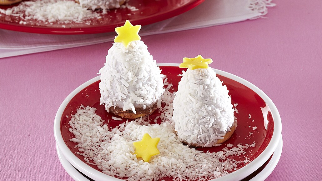 - Rozpustíme bílou čokoládovou polevu, namočíme do ní vosí hnízda a posypeme je kokosem a můžeme ozdobit hvězdičkami. Necháme ztuhnout.