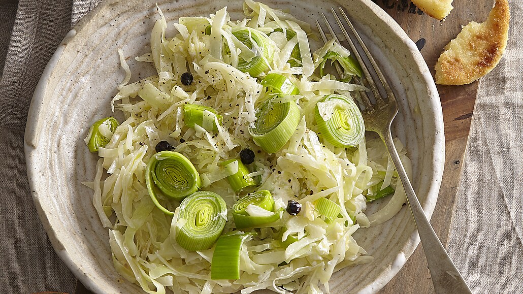 - Opečený pórek přidáme k zelí. Promícháme a společně dusíme asi 10 minut. Nakonec vmícháme smetanový sýr.