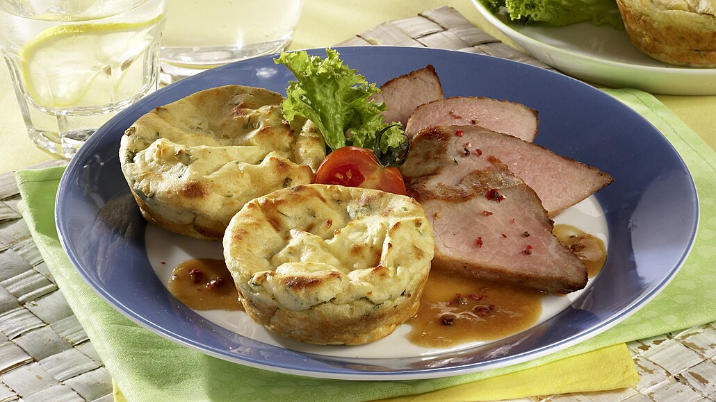 - Pudinkové mističky nebo mističky formy na muffiny vymažeme olejem a naplníme bramborovou hmotou. Bochánky pečeme při 180 °C asi 15-20 minut dozlatova.