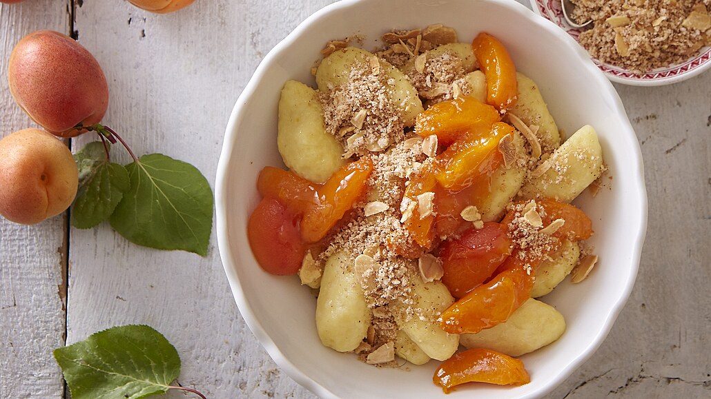 - Uvařené noky podáváme s meruňkami a posypané strouhankou a cukrem.
