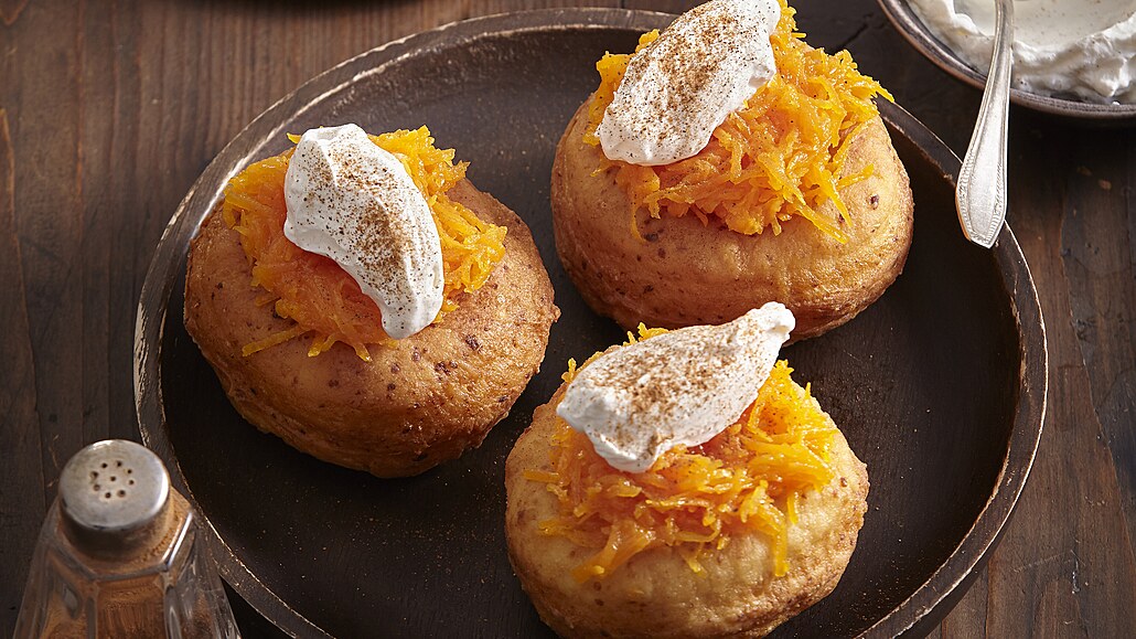 - Vdolky ještě vlahé potřeme mrkvovými povidly a přidáme například tvaroh posypaný skořicí. Podáváme jako sladký hlavní chod nebo moučník.