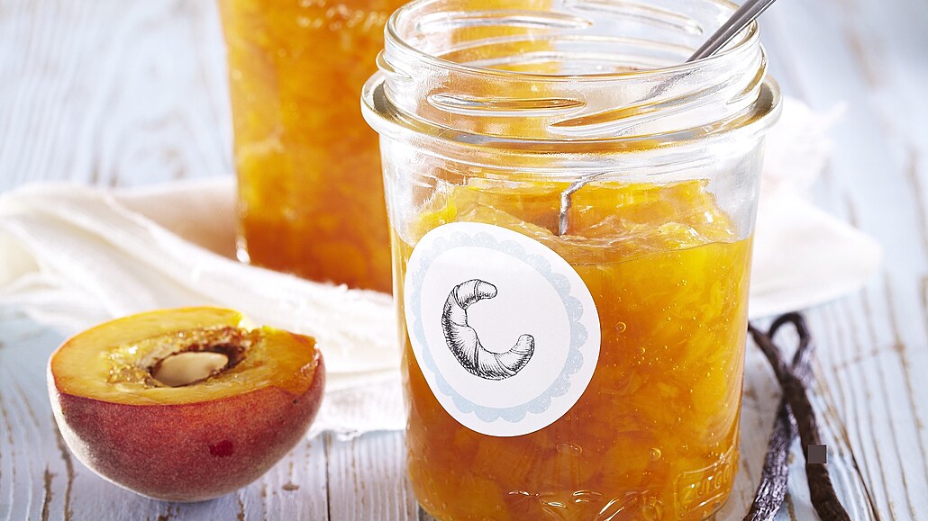 - Broskve spaříme v horké vodě a oloupeme. Rozkrojíme je, zbavíme pecky a nakrájíme na malé kousky. Odvážíme si 1000 g. Odvážené broskve promícháme s cukrem a citronovou šťávou. Přidáme k nim dřeň z vanilky a necháme je asi dvě hodiny odležet.