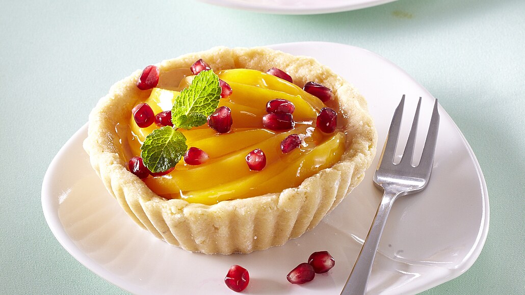 - Broskve nakrájíme na plátky a rozložíme je na krém. Naplněné košíčky dáme do chladničky ztuhnout. Dortové želé připravíme podle návodu na obalu a potřeme jím broskve. Necháme opět ztuhnout. Nakonec ozdobíme zrníčky z granátového jablka.