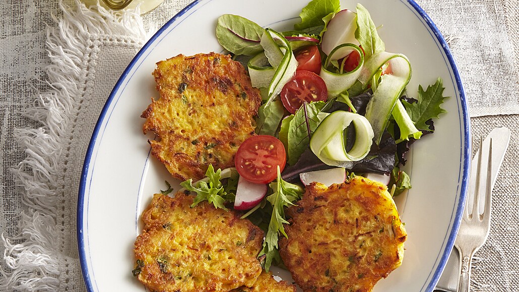 - Na pánvi rozehřejeme lžíci oleje a ze směsi vytvoříme menší placičky, které smažíme z obou stran dozlatova.