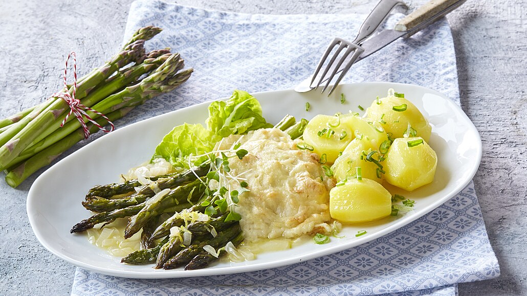 - Na másle orestujeme cibulku nakrájenou najemno a přidáme uvařený chřest. Zakapeme citrónovou šťávou a přelijeme omáčkou velouté. Nakonec vše zapečeme v troubě vyhřáté na 180 °C dozlatova. Podáváme např. s vařeným bramborem.