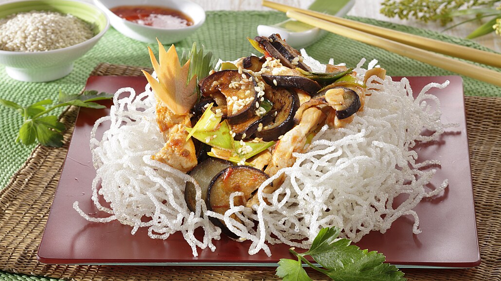 Čínské kuřecí nudličky s lilkem