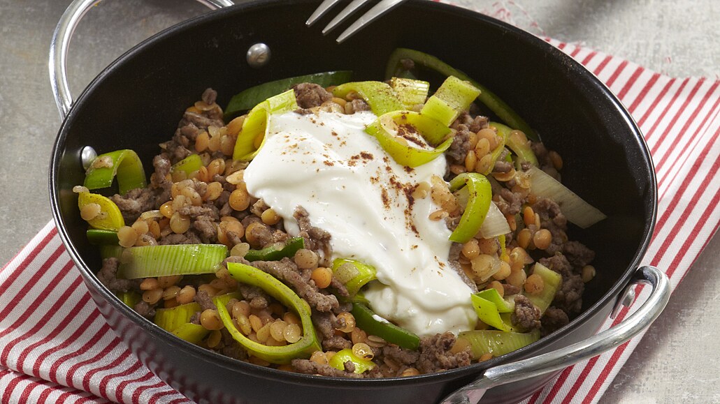 - Zalijeme vývarem, přidáme mletou skořici, sůl a opepříme. Přivedeme k varu a 10 minut dusíme. Pak přidáme vypranou čočku a dusíme společně doměkka.