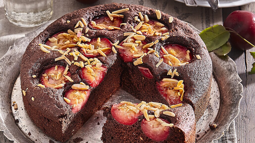 - Hotové těsto rozetřeme do kulaté formy vymazané tukem a vysypané polohrubou moukou. Blumy očistíme, rozpůlíme a vypeckujeme. Rozložíme na povrch těsta slupkou dolů.