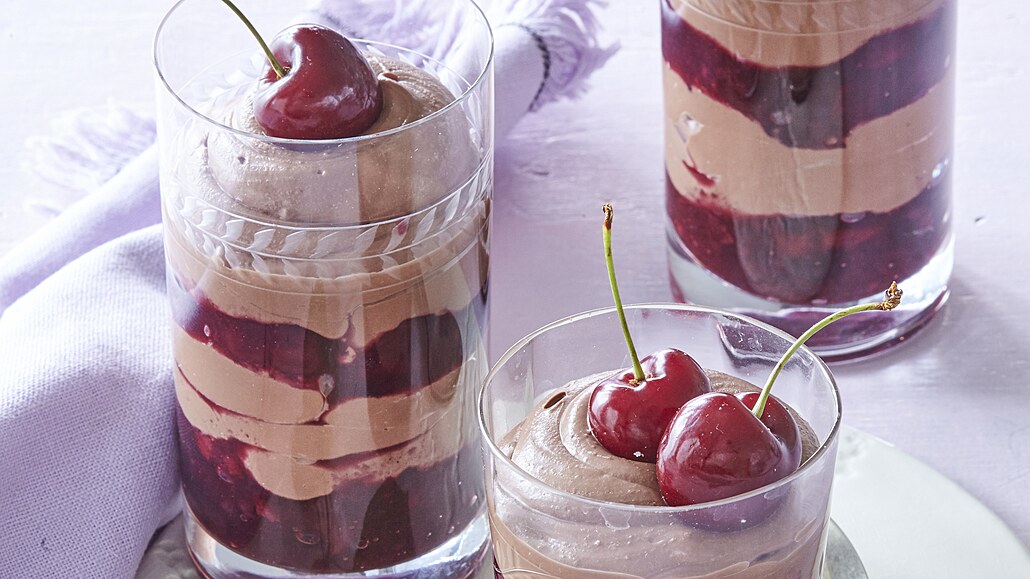 - Odležený krém vyšleháme a střídavě s višňovou omáčkou plníme do skleniček. Nakonec poháry dozdobíme čerstvými višněmi.