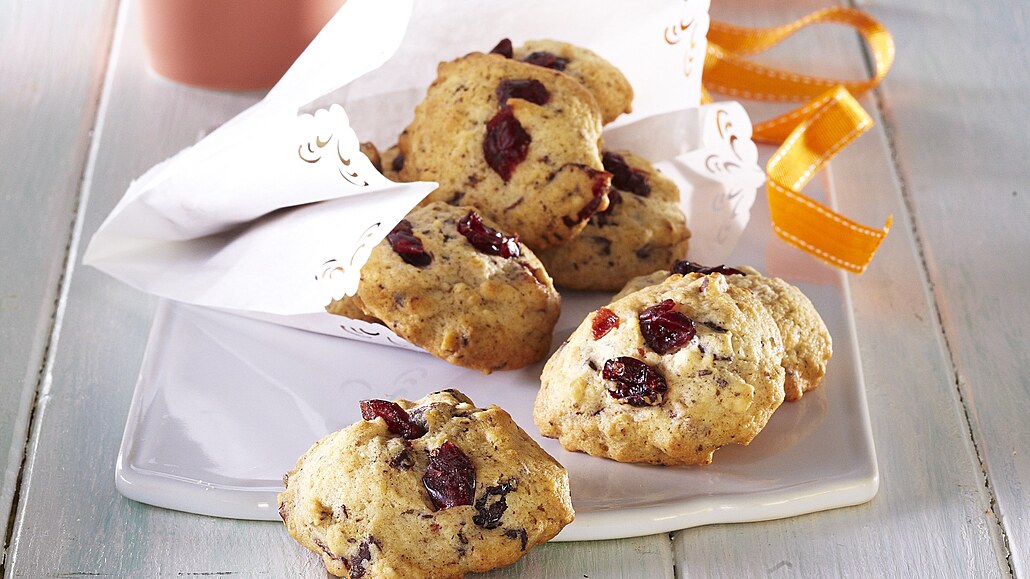 - Mouku smícháme se skořicí a kypřicím práškem. Čokoládu, brusinky a oříšky vmícháme do vaječné pěny a prosijeme na ni moučnou směs. Nakonec přidáme mléko a ze všech přísad vypracujeme pevné těsto.