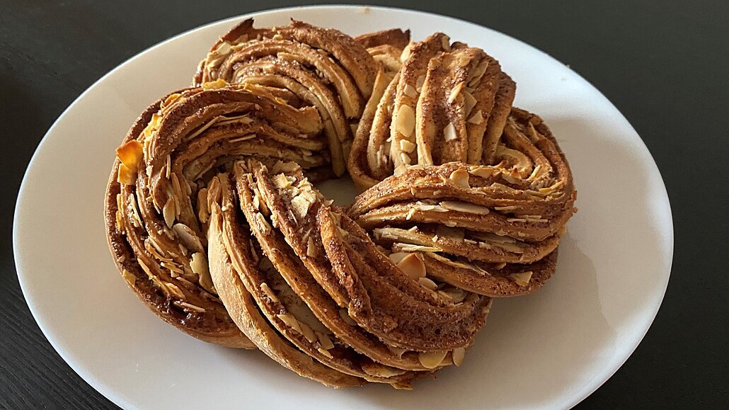 - Placky srolujeme do rolády a rozkrojíme podélně. Oba "hady" zapleteme do věnce. Troubu předehřejeme na 170 °C a pečeme 20 - 25 minut.
