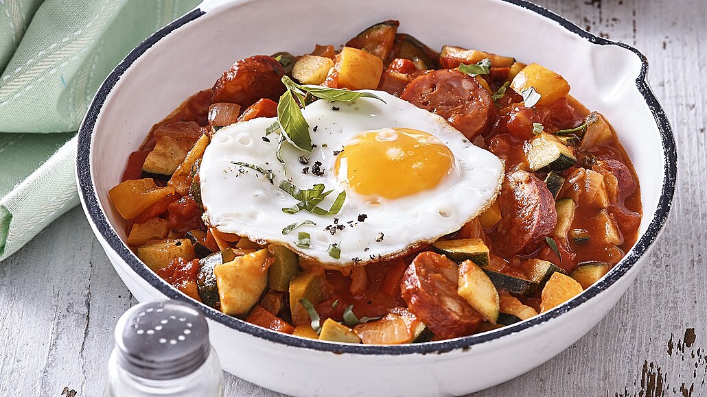 - Hotové lečo podle chuti přisolíme a vmícháme do něj pokrájené lístky bazalky. Rozdělíme ho do talířů, doplníme vejci a posypeme špetkou drceného pepře a bazalkou.
