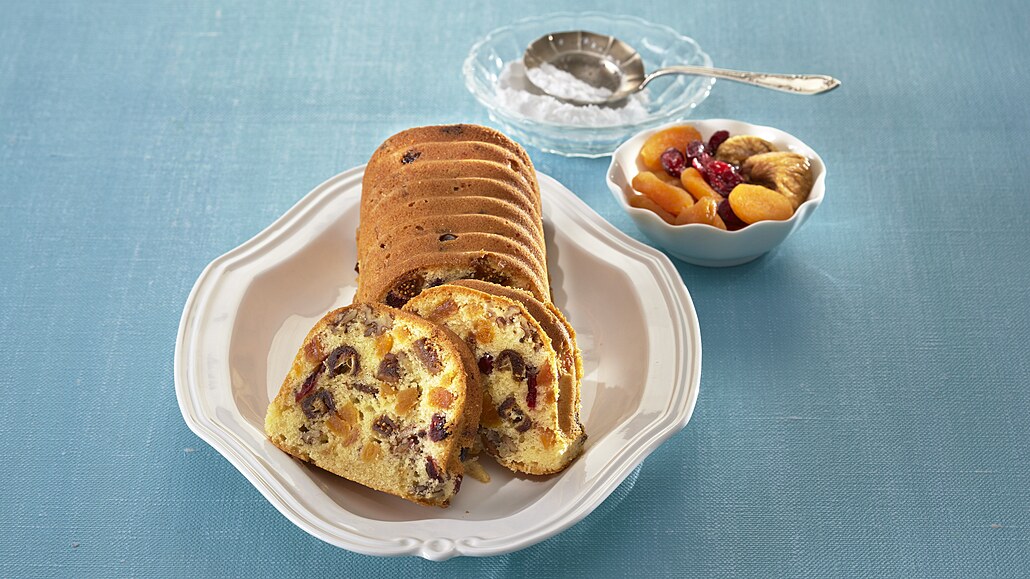 - Máslo vyšleháme se žloutky a cukrem do pěny. Bílky vyšleháme na pevný sníh. Obě hmoty spojíme a lehce vmícháme prosátou mouku s kypřicím práškem, na kousky nakrájené sušené ovoce a nahrubo nasekané ořechy.