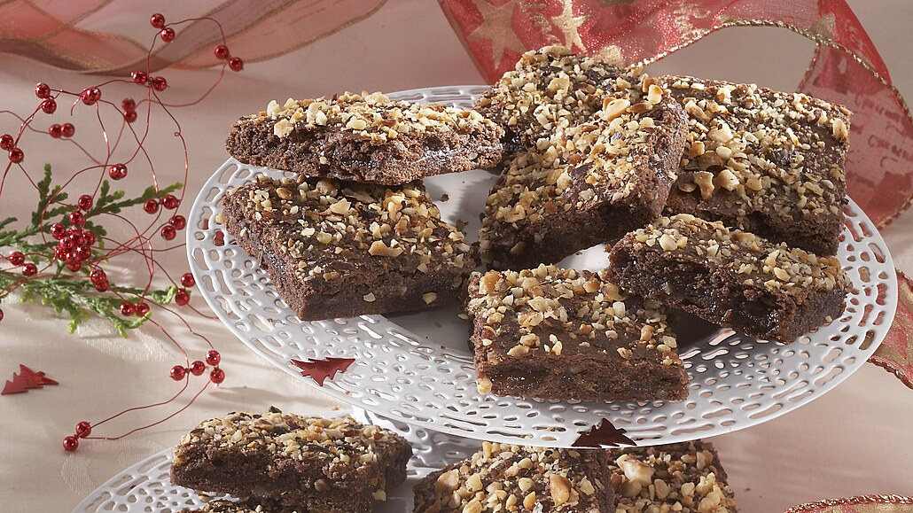 - Ořechy nasekáme nahrubo. Těsto rozpůlíme. Jednu část rozválíme na plát, kterým vyložíme malých plech, a potřeme marmeládou. Zbylé těsto rozválíme na stejně velký plát a položíme na marmeládu. Potřeme zbylým vejcem a posypeme ořechy.