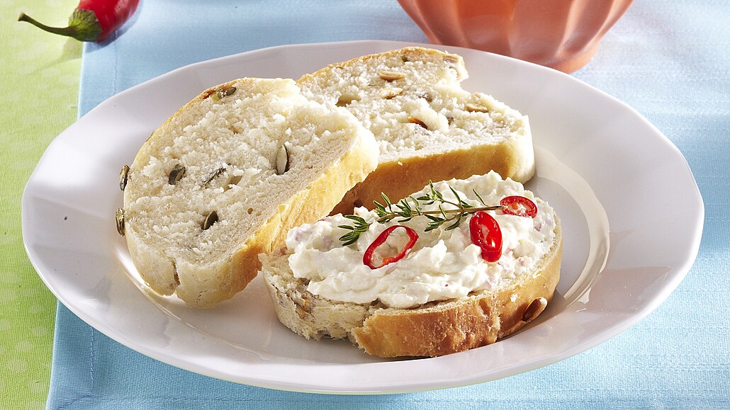 - Balkánský sýr rozdrobíme. Přidáme jogurt, hořčici, nasekanou chilli papričku a tymián. Pomazánku dochutíme solí a pepřem a necháme ji vychladit. Pak ji mažeme na ciabattu.