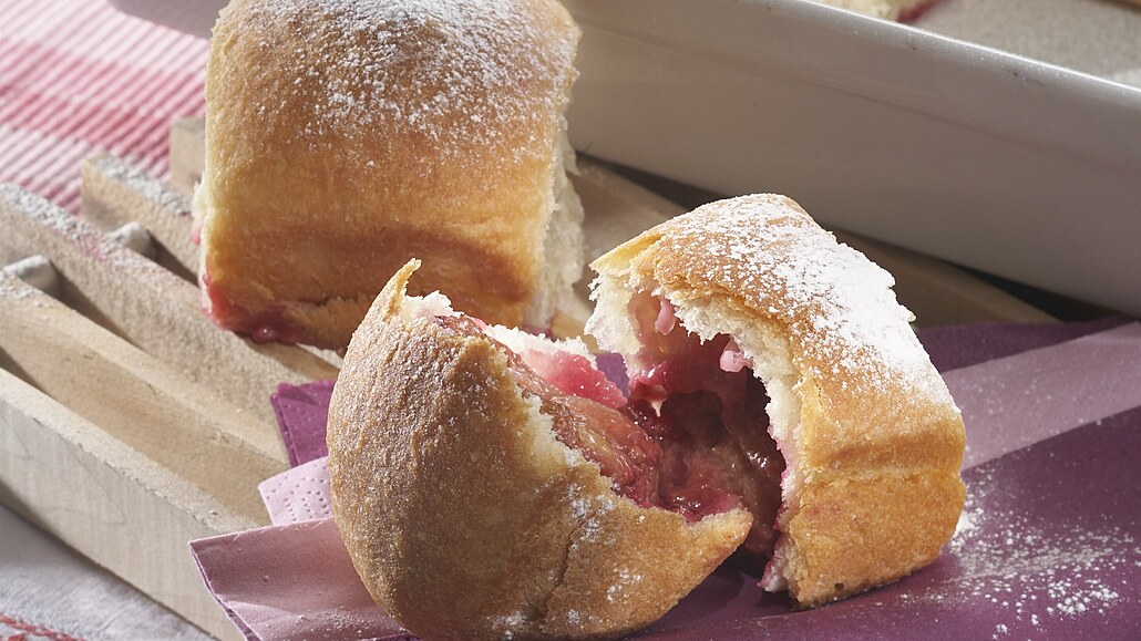 - Vykynuté těsto rozválíme a rozkrájíme je na 16 čtverečků. Na každý položíme tři půlky švestek a dobře je do těsta zabalíme. Buchty narovnáme volně do vymaštěného pekáčku. Po stranách i na povrchu je potřeme rozpuštěným máslem, aby se nespekly. Necháme je znovu lehce nakynout.