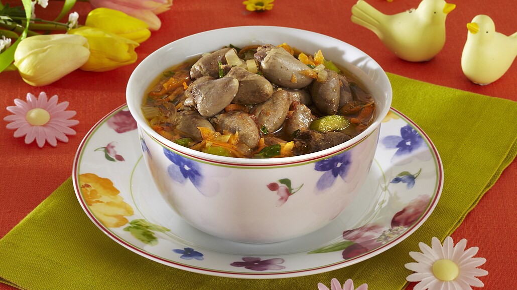 - Když jsou srdíčka měkká, přidáme nasekanou bazalku a okurky nakrájené na kousky. Vše krátce prohřejeme a podáváme například s vařenými bramborami.