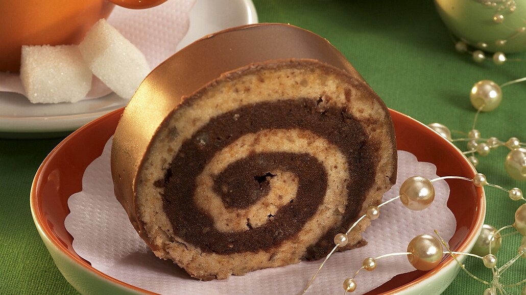 - Ztuhlou roládu vybalíme z alobalu, potřeme čokoládovou polevou a necháme ztuhnout. Před podáváním nakrájíme roládu nožem, který namáčíme do horké vody, aby poleva nepopraskala, na plátky.