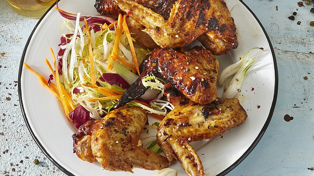 - Na rozpálený gril pak vyskládáme namarinovaná křídla a v průběhu opékání otáčíme, aby se opekly souměrně ze všech stran dozlatova. Hotová křidýlka můžeme podávat například se zeleninovým salátkem nebo hranolkami.