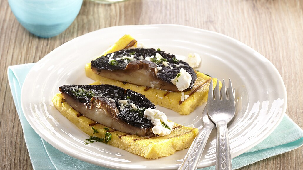 - Nasekanou petržel smícháme se lžící oleje a lžičkou citronové šťávy. Grilovanou polentu rozdělíme na talíře. Rozdělíme na ni opečené hlavičky žampionů, které osolíme a opepříme. Na každý žampion dáme lžičku ricotty a pokapeme petrželovým olejem.