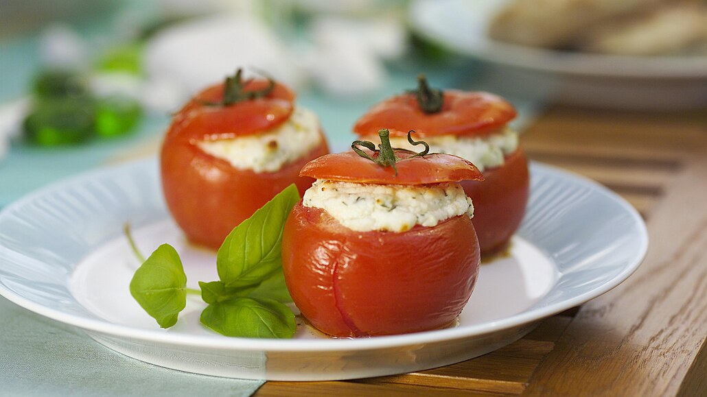 - Okapaná rajčata naplníme brynzovou směsí a přiklopíme odříznutými vrškmy rajčat. Naplněná rajčata dáme na středně vyhřátý gril a grilujeme 10 - 15 minut pod poklopem, abychom vytvořili prostředí jako v troubě. Pokud nemáme gril s poklopem, zkrátíme dobu grilování.