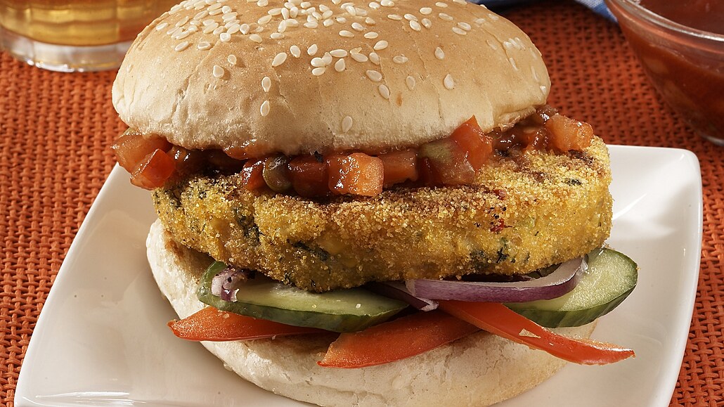 - Housky rozkrojíme. Na spodní část každé z nich naneseme několik nudliček papriky, plátků okurky a měsíčků cibule. Navrch posadíme karbanátek. Přelijeme ho kečupem, do kterého jsme vmíchali nadrobno pokrájené rajčátko, a zakryjeme vrchním dílem housky.