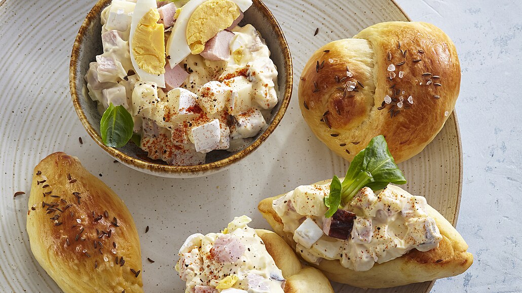 - Majonézu smícháme s uvedenými ingrediencemi a spojíme s nakrájenými surovinami. Necháme dobře vychladit a podáváme s pečivem.