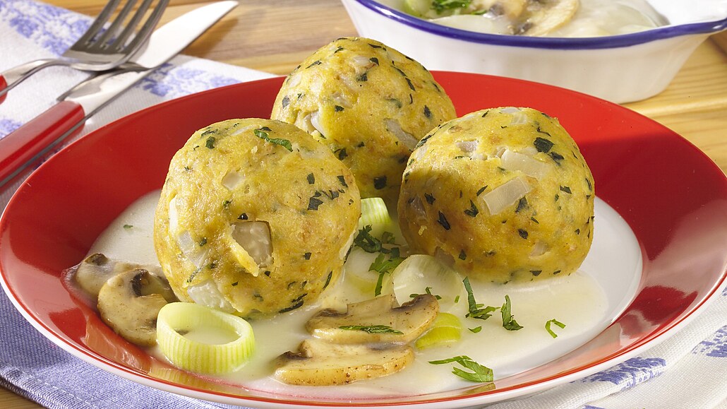 - Z těsta vytvarujeme 16 kulatých knedlíků, vhodíme do vroucí osolené vody a vaříme 15-20 minut. Uvařené knedlíky vyjmeme a podáváme přelité omáčkou.
