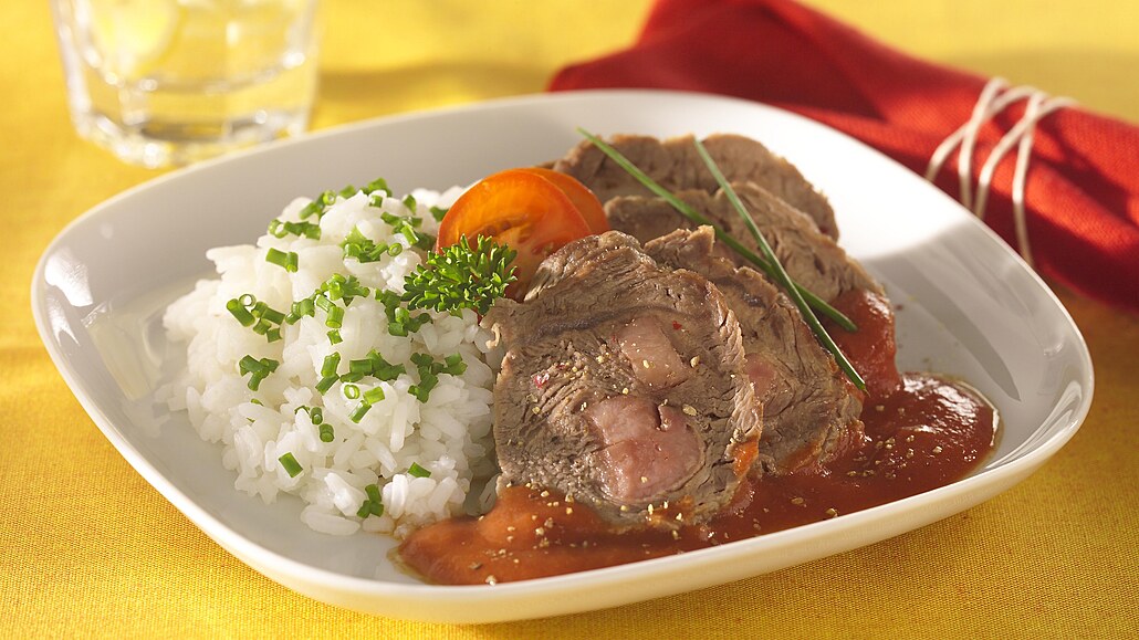 - Měkké maso vyjmeme a šťávu přecedíme. Mouku rozšleháme se smetanou, omáčku zahustíme a povaříme. Měkké maso v omáčce prohřejeme, nakrájíme na plátky a podáváme s dušenou rýží.