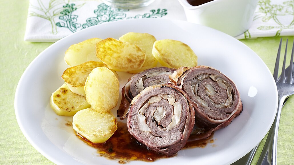 - Hotovou roládu necháme krátce zchladnout a odstraníme provázek. Nakrájíme ji na plátky a podáváme přelitou výpekem s opečenými brambory a zeleninovým salátem.