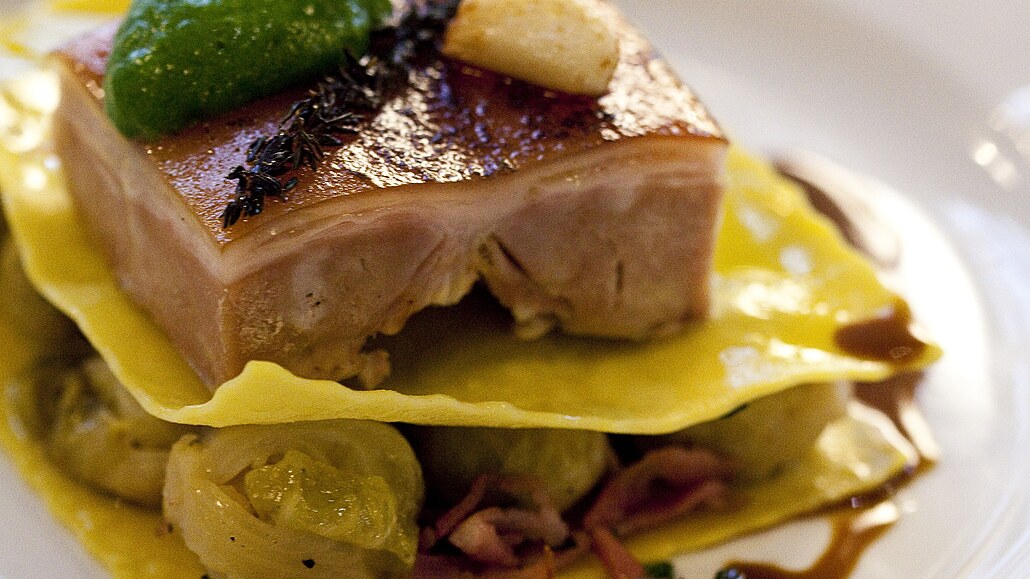- Těsto na lasagne rozválíme na tenkou placku. Rádýlkem vykrájíme čtverce o velikosti 10 x 10 cm. V kastrolu přivedeme k varu osolenou vodu a lasagne v ní uvaříme (na skus). Na teplý talíř položíme jeden plátek lasagne. Vyskládáme na něj kapustičky a přiklopíme druhým plátkem. Na něj položíme porci upečeného masa a pokapeme výpekem.