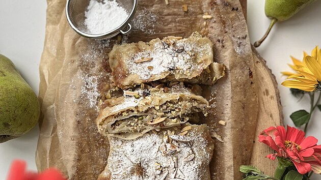 Hruškový tažený závin s kardamomem a pistáciemi podle @janieefoodie