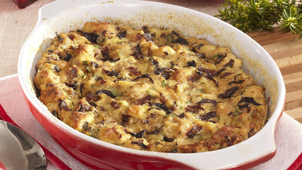 - Housky nakrájíme na kostičky a vsypeme do mísy. Přilijeme mléko, v němž jsme rozšlehali vejce s prolisovaným česnekem, a přidáme podušené houby, vařené krupky a nasekanou petrželku. Vše dochutíme solí a pepřem a promícháme.