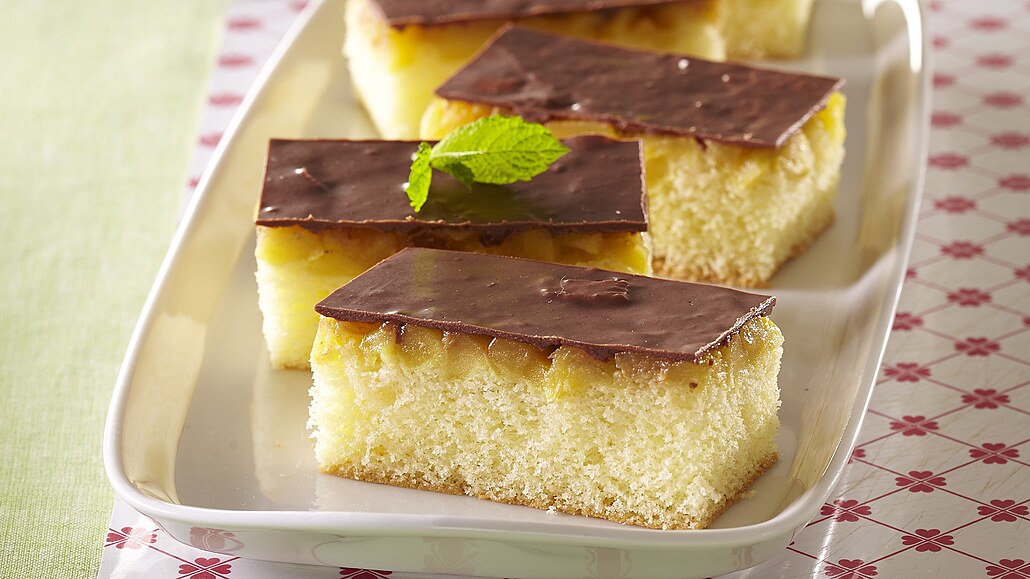 - Pak opatrně odtrhneme papír a povrch potřeme rozehřátou polevou. Necháme v chladničce ztuhnout a nakrájíme na řezy.