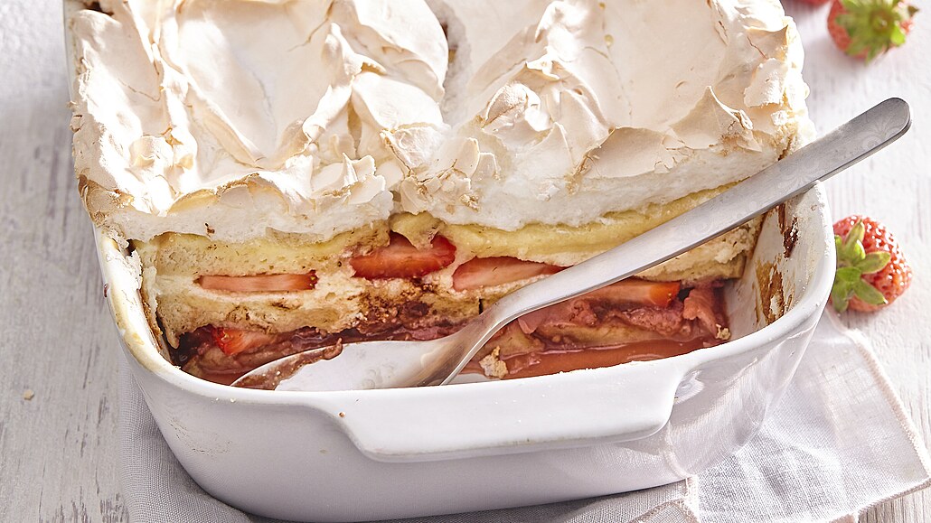 - Na dno misky dáme plátky chleba namočené do mléka s vejci. Navrch rozložíme polovinu nakrájených jahod a nasekanou čokoládu. Na jahody naskládáme druhou vrstvu z chleba.