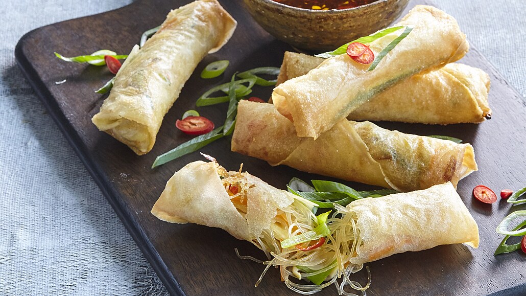 - Připravené rolky smažíme dozlatova v hrnci v rozpáleném oleji. Můžeme podávat s chilli nebo sójovou omáčkou.