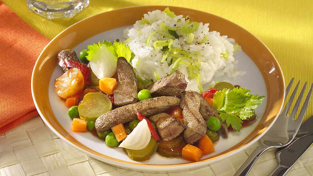 - Moravanku necháme okapat a přidáme ji k játrům společně s kečupem. Vše zasypeme mletou paprikou, promícháme a dusíme asi 15 minut. Hotový pokrm dochutíme mletým pepřem a solí. Podáváme s rýží.