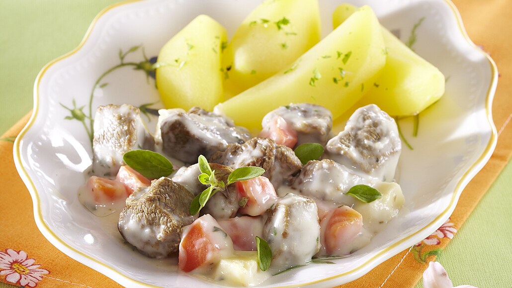 - Hotovou omáčku nalijeme na vařené jehněčí se zeleninou. Vše už jenom prohřejeme a podle potřeby dochutíme solí a pepřem. Podáváme s vařenými bramborami.