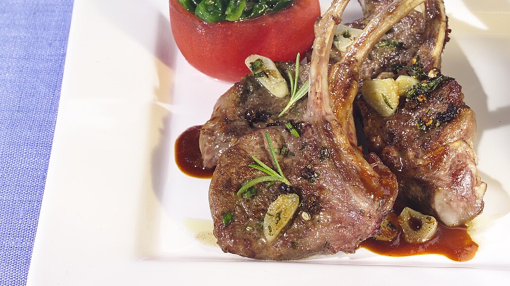 - Troubu si předehřejeme na 120 °C. Žebírka podlijeme omáčkou a ještě 10 minut zapečeme. Podáváme s rajčaty plněnými špenátem a restovanými bramborami.
