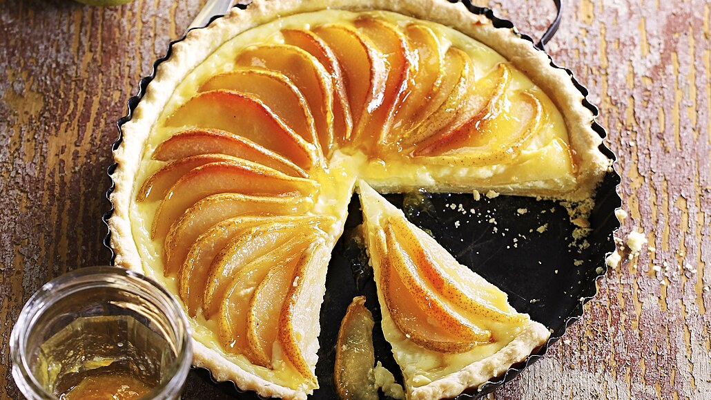 Poctivý moučník pro odpolední kávu využívá techniku pečení jemného těsta se smetanou a bohatou náplní z vanilkového pudinku. Šťavnaté hrušky nakapané citronem a závěrečné potření horkým džemem vytvářejí harmonický celek, který svou neuvěřitelnou jemností a strukturou připomene umění vyhlášených tradičních cukráren.